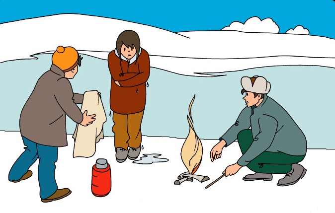 Dacă ați salvat pe cineva de sub gheață, dați-i sinistratului o parte din vestimentația voastră. Accidentatul trebuie imediat deplasat în încăpere caldă, dezbrăcat, încălzit prin fricţiune şi învelit s-au îmbrăcat în haine uscate, după ce este necesar să servească un ceai s-au apă fierbinte. Chemați salvatorii sau ambulanța.