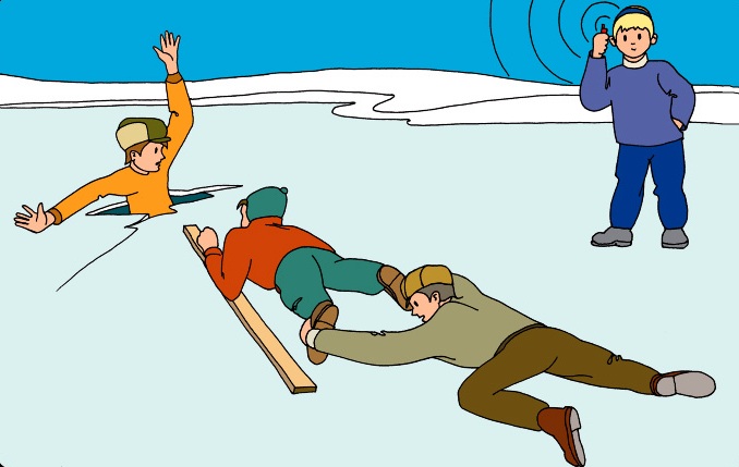 Dacă s-a rupt gheaţa şi va-ţi prăbuşit în apă, chemaţi imediat în ajutor, străduiţi-vă să vă păstraţi calmul, nu vă bălăciţi, încercaţi să urcaţi cu pieptul pe marginea gheţii, cu mâinile aruncate înainte, încercaţi să vă ridicaţi sinestătător pe gheaţă. Urcând pe gheaţă, mişcaţi-vă târâș spre mal.