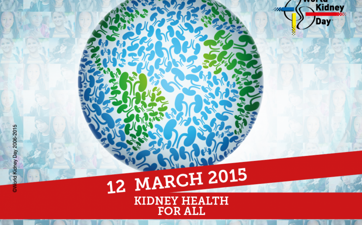 Ziua Mondială a Rinichiului 2015 marchează a X-a aniversare. Tema anului curent „Rinichi sănătoşi pentru toţi” ne aminteşte că toţi suntem egali în ceea ce priveşte riscul bolilor de rinichi şi accesul la tratament.