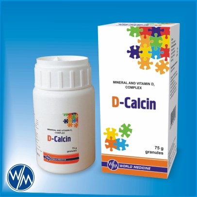 D-calcin este un preparat destinat suplinirii deficitului vitaminei D şi regării metabolismului calciului şi fosforului în organismul uman, cu mineralizarea ulterioară a oaselor, prevenirea resorbţiei lor şi dezvoltării osteoporozei. Ameliorează activitatea neuro-musculară şi cardio-vasculară.